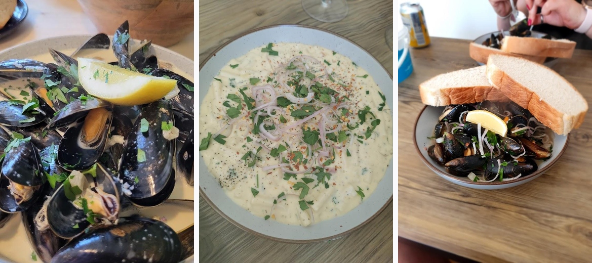 Indulge in the freshest seafood at Moules and Co Newquay! Located at 2 S Quay Hill, savor delectable dishes like moules frites, prawn pasta, and creamy mac and cheese, paired perfectly with our selection of local ciders. Enjoy a unique dining experience where great taste meets the vibrant surf culture of Newquay. Reserve your table today!